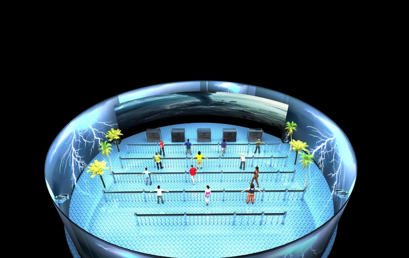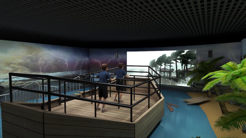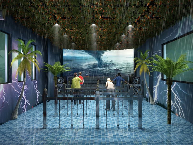科普館臺風體驗館是VR通過3D視頻技術、動感平臺技術、環境特效技術三者結合起來,模擬令人生畏的“臺風”來襲的科普、娛樂兼具的創新項目。 體驗者走進臺風體驗館,帶上3D眼睛,在身臨其境臺風體驗館動感平臺上手握扶欄,待一切安全防護措施俱備,精彩震撼的臺風效果體驗即可開始。