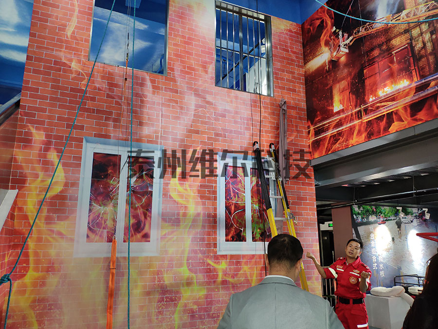 本展項(xiàng)主要是遇到室內(nèi)著火或地震的情況下,身處高層,如何利用緩降器和繩索,從高處快速撤離到地面。 對(duì)高空緩降的生存技能進(jìn)行演練,不單單是讓體驗(yàn)者學(xué)會(huì)如何使用緩降繩索,更是克服面臨高空恐懼的心理適應(yīng)。